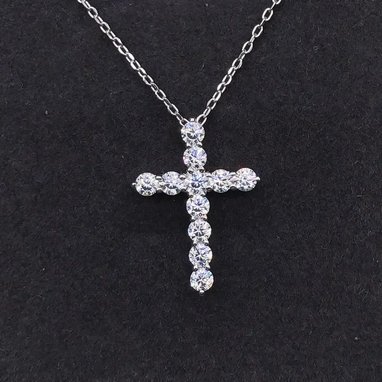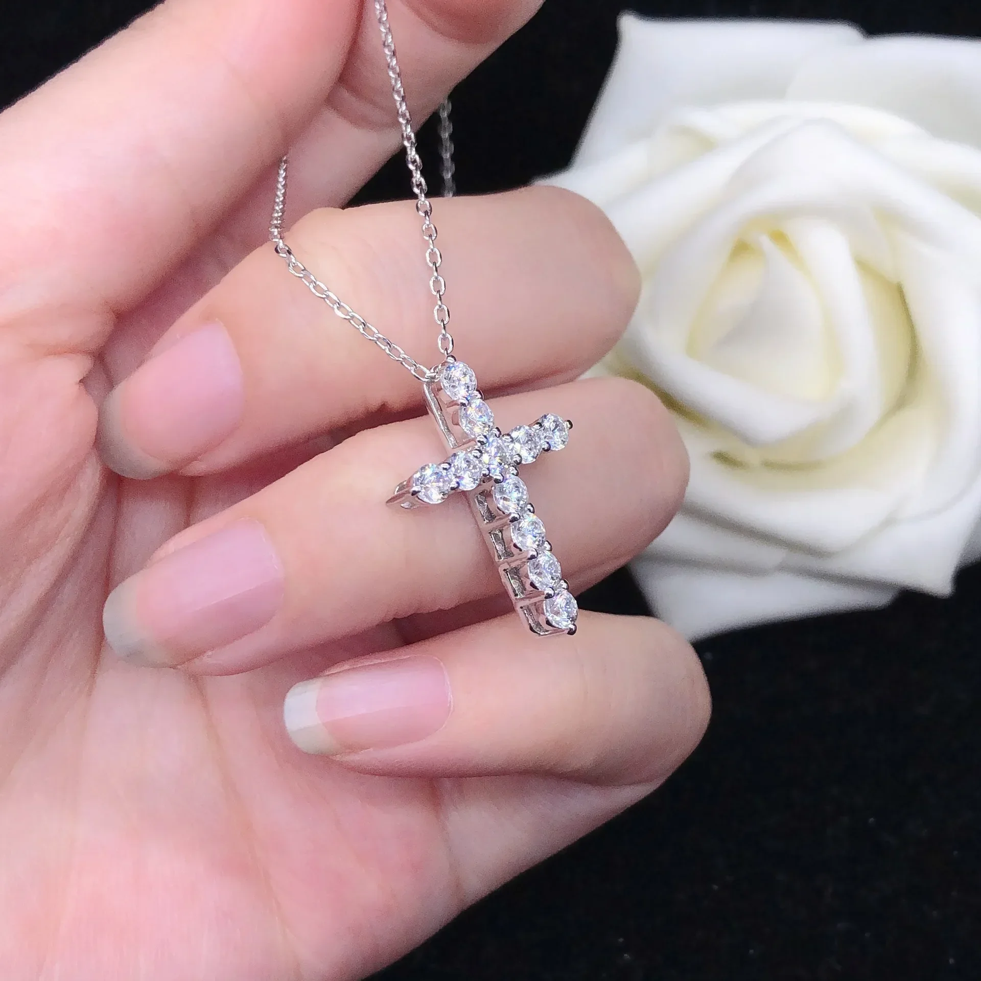 Solid 18K White Gold AU585 Platinum PT950 Moissanite Diamond Necklace Cross Diamond Pendant Necklace