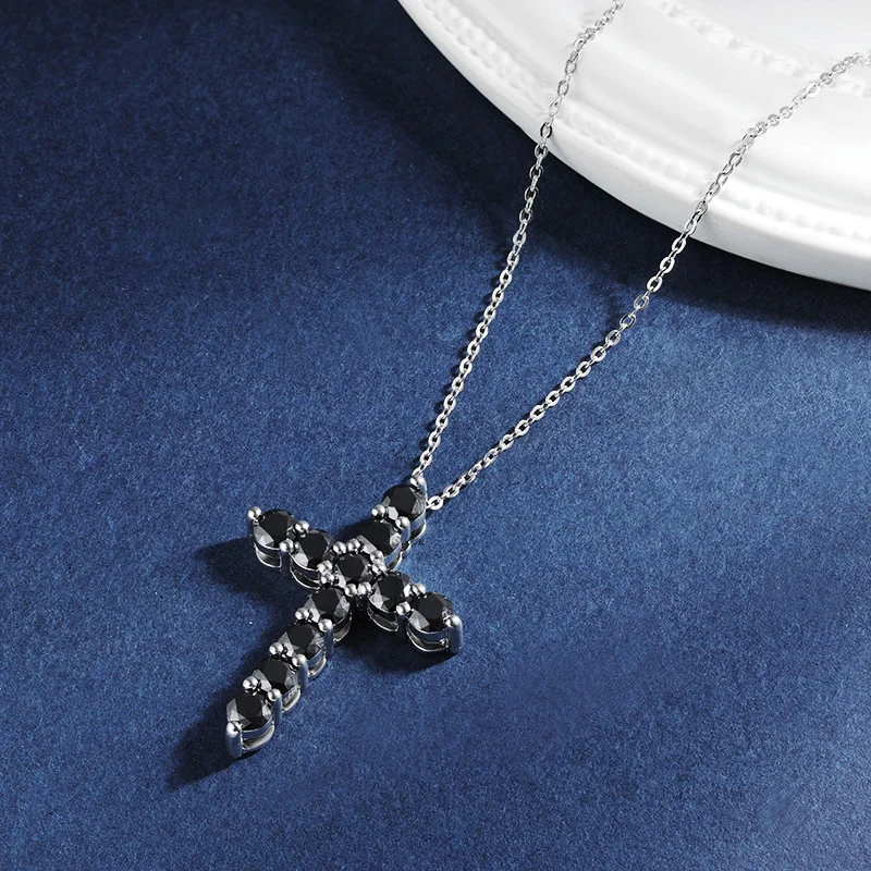 TBCYD 3mm 4mm 5mm Real Black Moissanite Cross Necklace Pendant For Women Men GRA Certified S925 Silver Jesus Neck Chain Jewelry